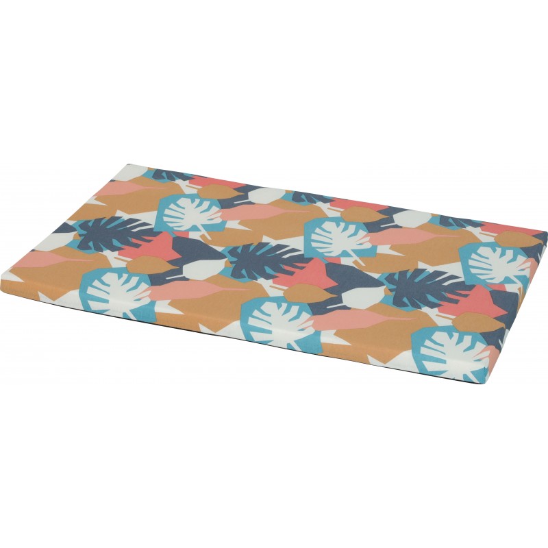 Tapis déhoussable issu de la nouvelle gamme de confort ONE 'JUNGLE' pour chiens. Qualité: tissu polycoton 170g. Garnissage: 100% polyuréthane. Hygiénique: le tapis est déhoussable pour faciliter l'entretien et est lavable en machine à 30°. Coloris: motif tropical. Dimensions: L90 x p56 x h4 cm.|