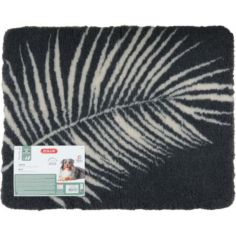 Cette nouvelle gamme de tapis isolant pour chien est fabriquée en France à base de polyester recyclé (fourrure 100% polyester recyclé). Ce tapis isolant au motif tendance végétal est très confortable grâce à sa fourrure douce, chaude et ultra moelleuse (densité 1200g/m²). Sa texture isolera le chien des sols froids et limitera les déperditions de chaleur corporelle. Grâce à sa composition, l’humidité est évacuée vers le bas, la fourrure reste sèche. La circulation d'air dans les fibres limite ainsi l'apparition de mauvaises odeurs. Pratique, il est antidérapant grâce à son revêtement en latex. Il est lavable en machine à 40° et sèche rapidement.
