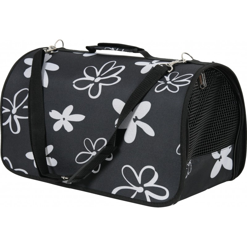 Un sac de transport tendance et coloré! Adoptez le look Flower pour transporter votre chien ou votre chat! Le fond du panier est amovible pour un nettoyage facile. Des grilles d'aération à chaque extrémité du panier permettent à l'animal de voir à l'extérieur et à l'air de bien circuler. À porter sur l'épaule ou à la main (poignée rembourrée ergonomique, bandoulière fournie). Ouverture pratique avec fermeture éclair. Rangement à plat pour un gain d'espace.|