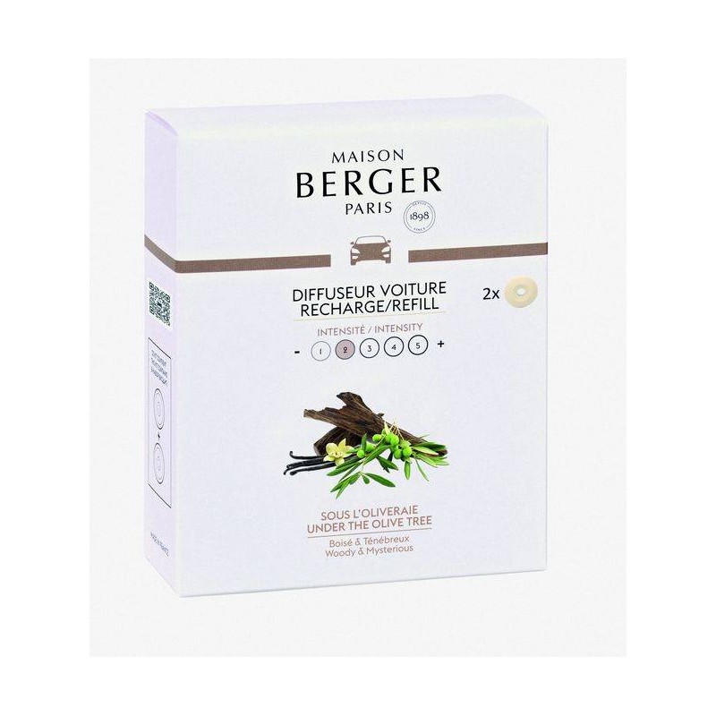 Les Recharges diffuseur voiture Sous l'Oliveraie illuminent vos trajets avec leurs odeurs intenses venues tout droit de Méditerranée. La richesse sacrée du bois de oud se conjugue à la rondeur florale du jasmin et aux notes chaudes de myrrhe.|