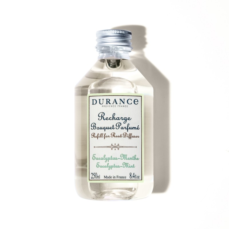 Permet de remplir les bouquets ou fleurs parfumées Durance autant de fois que souhaité.Le parfum Eucalyptus Menthe éveille les sens grâce aux notes cristallines d'eucalyptus mêlées à la vivacité des feuilles de menthe froissées. Le parfum s'ouvre ensuite sur des notes d'herbe coupée sur un délicat fond d'anis étoilé et de fleurs blanches.|