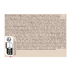 Recommandations d'usage : Réserver la recharge pour l'usage indiqué. Eviter le contact avec la peau et les yeux. En cas d'ingestion, consulter immédiatement un médecin et lui montrer l'emballage ou l'étiquette. Liquide et vapeurs très infammables. Conserver hors de portée des enfants et des animaux.
