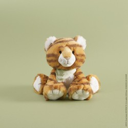Papaye, le tigreau, est le nouvel ami charismatique et protecteur de bébé qui sera tout le temps à ses côtés. Avec sa belle fourrure rayée aux teintes contrastées, il fera craquer tous les coeurs avec son extrême douceur. Les contrastes de sa fourrure permettent à bébé de développer sa vue. Son joli minois stimule l'affect et l'empathie de bébé. Son corps très moelleux et ses petites pattes servent de moyens de préhension pour les petites mains. Son nouveau bandana vert, est un rappel de la nature avec sa broderie de douces feuilles. Emblème de la collection Les Amis de Kaloo, ce bandana lui apporte une petite touche fraîche et tendance. Cette peluche tigreau de 17 cm pourra accueillir bébé dans un monde rempli d'amour et sera à ses côtés pour faire ses premières fois. Il est présenté dans une jolie boîte cadeau personnalisable avec un message dans l'espace disponible sous le couvercle. Lavable en machine à 30°. Rembourrage en polyester recyclé. Dès la naissance.