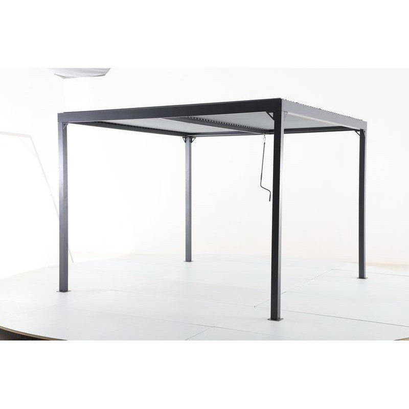Tonnelle bioclimatique 3x3 m. Structure et lames orientables aluminium. Ouverture par manivelle.