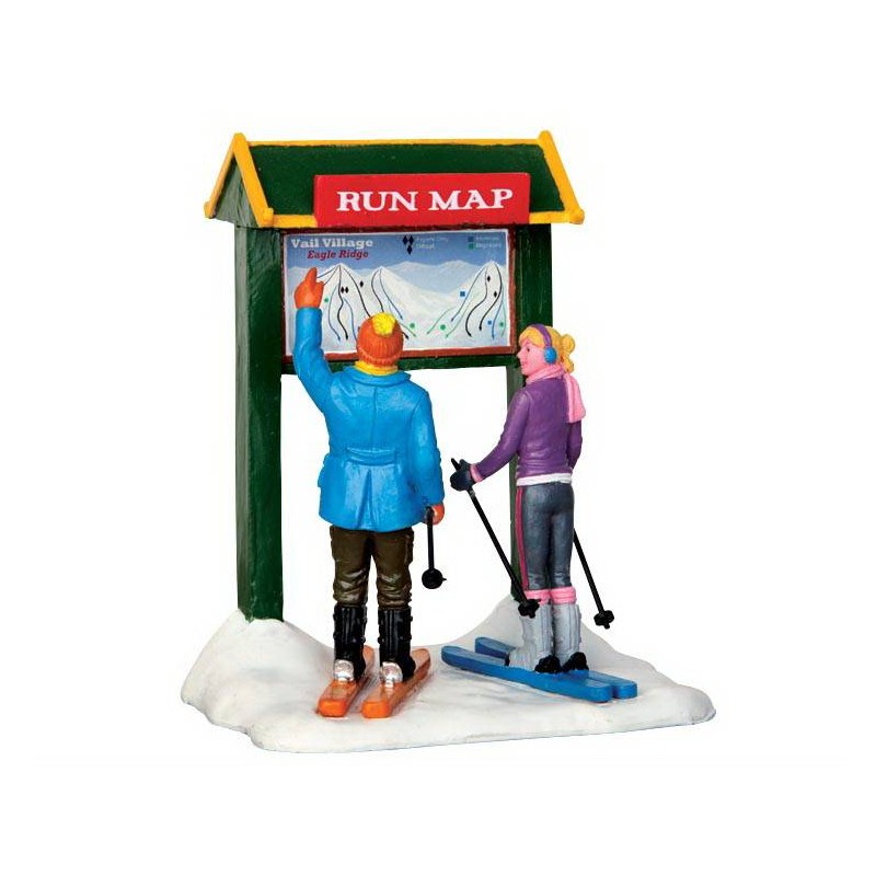 Pièce de la collection Vail Village de LEMAX, représentant un couple de skieurs regardant une carte des pistes de ski.