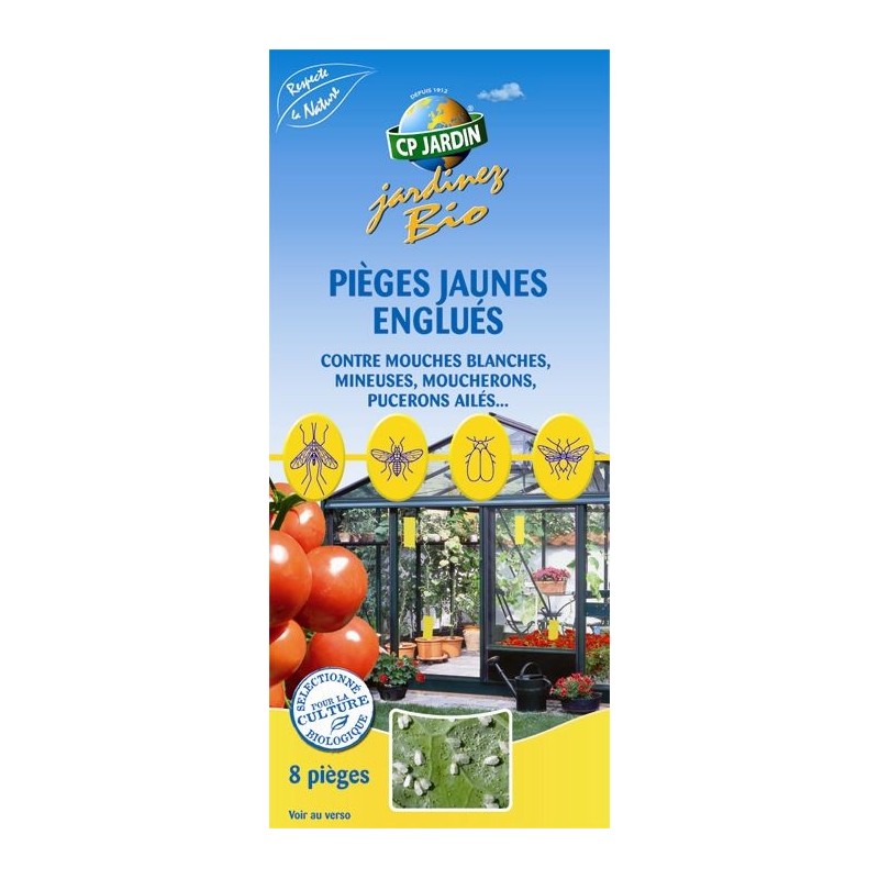 Les pièges jaunes englués offrent une protection biologique contre de nombreux insectes nuisibles: mouches blanches, pucerons ailés, mineuse des feuilles