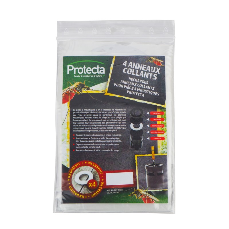 RECHARGE PIÈGE À MOUSTIQUES LARVES ET ADULTES - 4 anneaux collants + 1 offert