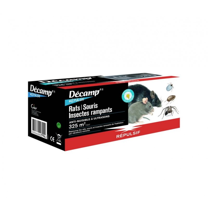 DÉCAMP RÉPULSIF Rats Souris Insectes rampants ANTI-NUISIBLE À ULTRASONS 325m2 maxi