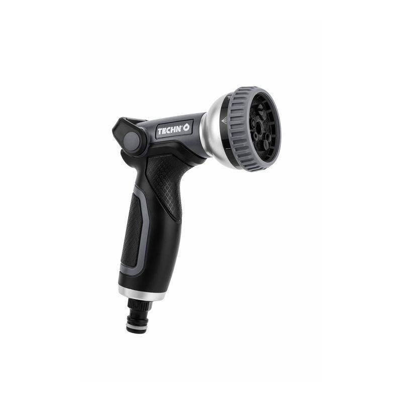 Pistolet d’arrosage 9 jets. Corps en ABS Poignée ergonomique revêtue d’une mono-matière (TPR) avec Grip Soft Touch Ouverture-fermeture au pouce. avec réglage du débit d’eau. Embout de connexion en ABS. Prise en main aisée. Réglage du débit d’eau d’une seule main. Facile d’utilisation. Garantie 2 ans.
