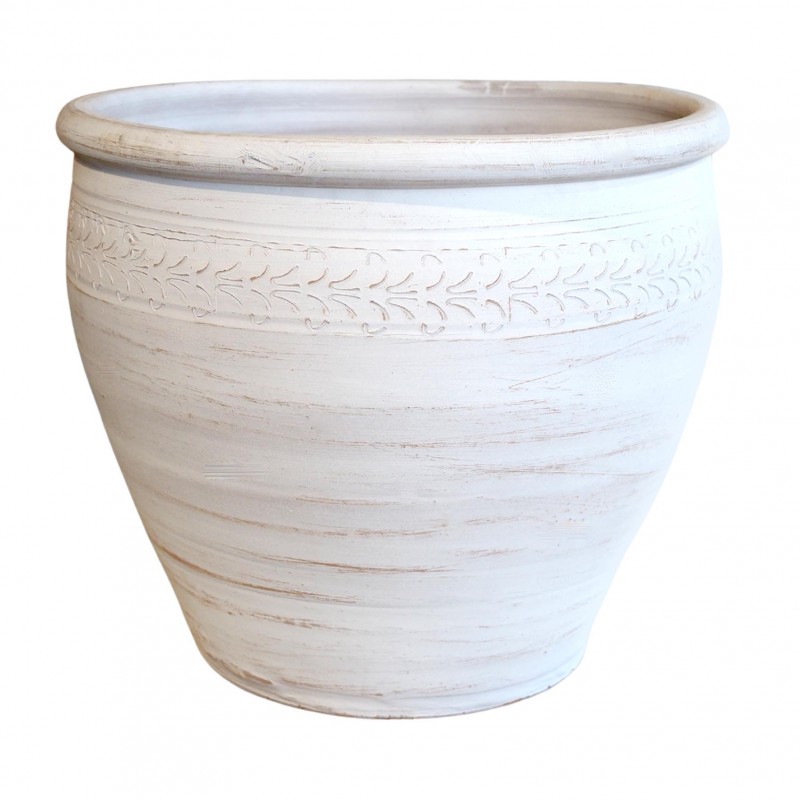 Pot Boule Texane Blanc En Terre Cuite Ø22-H24-DECOLINES