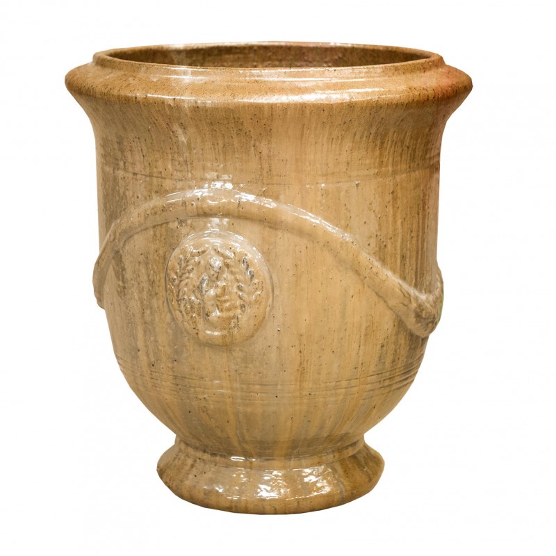 Vases sur Pieds Costa de de Ø43 en couleur Miel. Une finition au rendu brillant. Une beauté intemporelle, un ajout prestigieux à toute les jardineries.