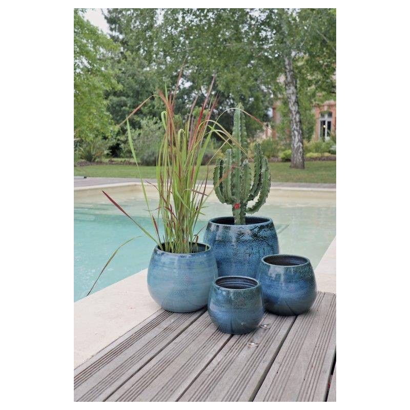 Pot boule CANCALE Ø25 BLUE WAWE Terre cuite émaillée LES POTERIES D'ALBI