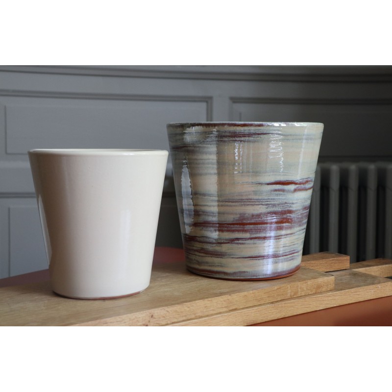 Pot en terre cuite émaillée, fabriqué en France à la main. Idéal pour la croissance de vos plantes et pour la décoration de vos maisons. A protéger du gel.