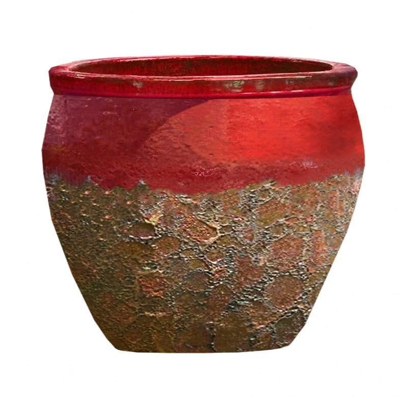 Pot Cuvier Léon Rouge, fait-main, résistance au gel, aux UV, percé. Leur finition ancienne ajoute une patine naturelle qui évoque l'usure du temps et ajoute une touche de caractère à chaque pot.