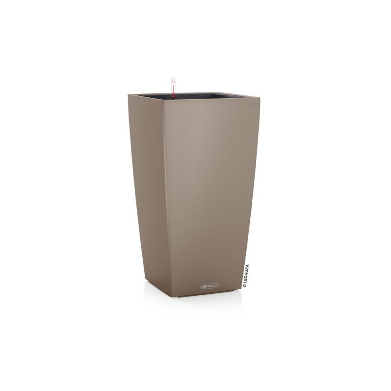 Pot carré réserve d'eau cubico color lechuza l30-h56 plastique brun sable