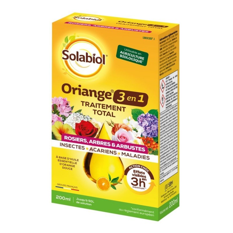 Traitement Total Ornemental Solabiol est un traitement de triple action agissant contre les insectes, les acariens et les maladies. Possédant plus de 85 usages homologués, c'est un traitement polyvalent et utilisable sur de nombreuses cultures : cultures ornementales, arbres fruitiers, potager... Avec des effets visibles sous 2-3h maximulm, le traitement est dôté d'une action rapide. De plus, c'est un produit UAB et de biocontrôle.