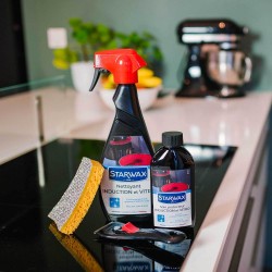Non rayant. Utilise avec les eponges non rayantes Starwax et le racloir pour vitroceramique. il nettoie sans rayer la surface en vitroceramique (il ne contient pas d'agent abrasif).|