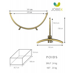 Si vous cherchez un support en bois pour votre hamac, vous venez peut être de trouver celui qu'il vous faut ! Fabriqué en Europe, ce support de qualité est en bois d'Épicéa venant de Scandinavie et possède la certification FSC Mixte. Son gros plus : ce support est compatible avec l'intégralité de la gamme Jobek : aussi bien sur des hamacs simples que double ainsi que des hamacs possédant ou non des barres en bois. Il est facile à entretenir et à nettoyer avec de l'eau claire ou savonneuse et des produits adaptés ou bois pour le vernis ou le peindre par exemple. Livré avec 4 mousquetons et 2 chaînes en acier inoxydable, vous pourrez adapté la longueur et la hauteur de votre hamac à votre guise. Adapté à une utilisation extérieure, il est cependant conseillé de le rentre dans un endroit sec et abrité pendant l'hiver. Support à monter soi-même