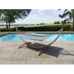 Les Sets EsKapade sont composés d'un support bois Kompagnon 320 en Épicéa de Scandinavie et un hamac Komplice. Le support Kompagnon 320 est un support EUROPÉEN certifié FSC Mixte. Il est accompagné du hamac Komplice fabriqué au Brésil en Jobekcord avec des barres bois stabilisatrices de 118 cm certifiées FSC 100%. Le Set est livré avec 4 mousquetons et 2 chaînes en acier inoxydables pour régler la hauteur du hamac à votre guise. Bien que ce set est une très bonne résistances aux intempéries, il est conseillé de rentrer le produit pendant l'hiver. Set à monter soi-même.