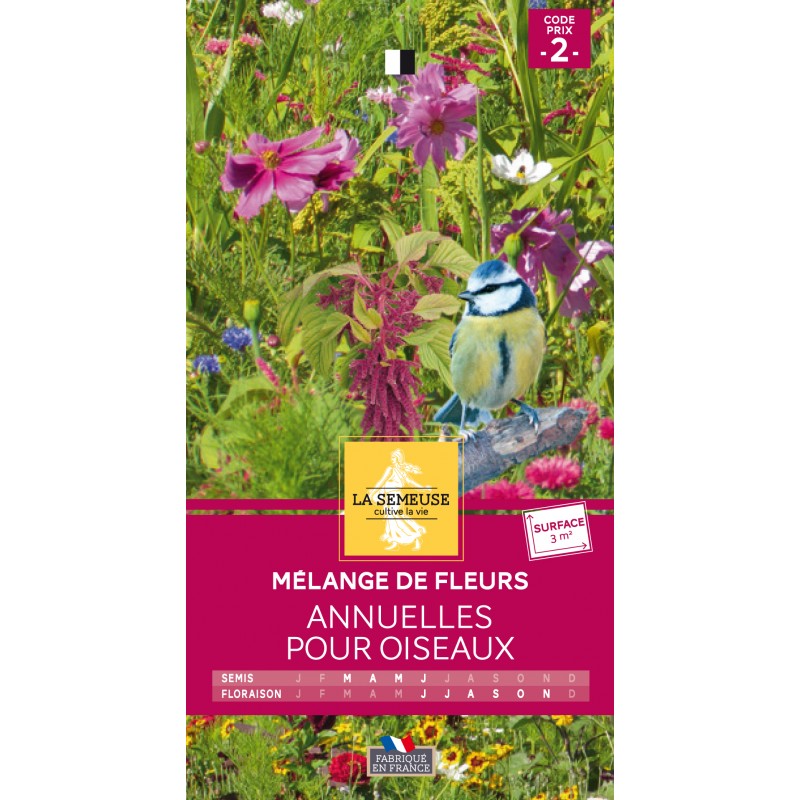Ce mélange de 15 variétés de fleurs annuelles, sélectionnées pour leurs couleurs et leur nectar contribuera à attirer les Mésanges, Pinsons des arbres, Chardonnerets élégants…
