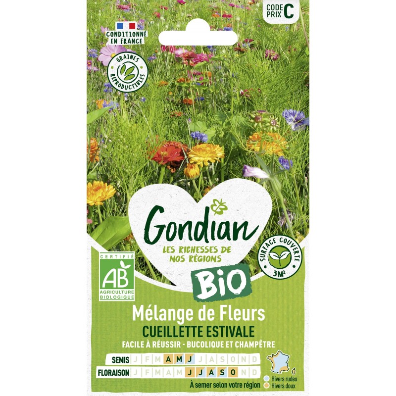 GONDIAN BIO-Mélange de fleurs CUEILLETTE ESTIVALE 3M2 Sachet CODE PRIX C