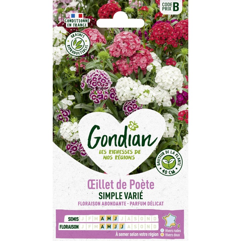 GONDIAN Oeillet de Poète SIMPLE VARIÉ Sachet CODE PRIX B