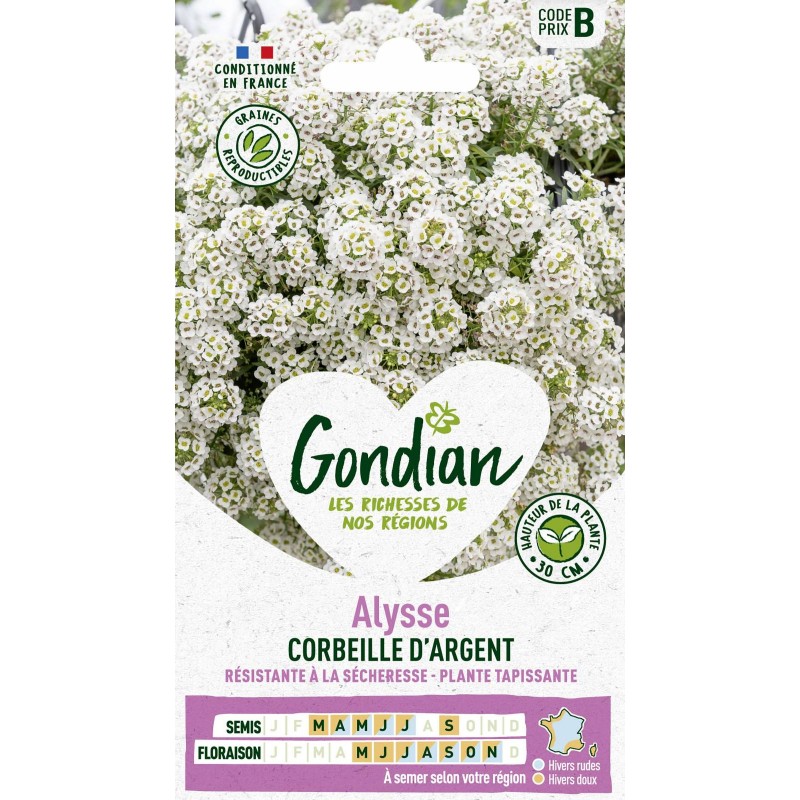 Annuelle dont la végétation fleurit très vite et forme un vrai tapis de petites fleurs blanches et odorantes durant l'été. Refleurit rapidement si l'on taille ou tond les plantes dès la fin de la floraison. Convient bien en bord de mer.|