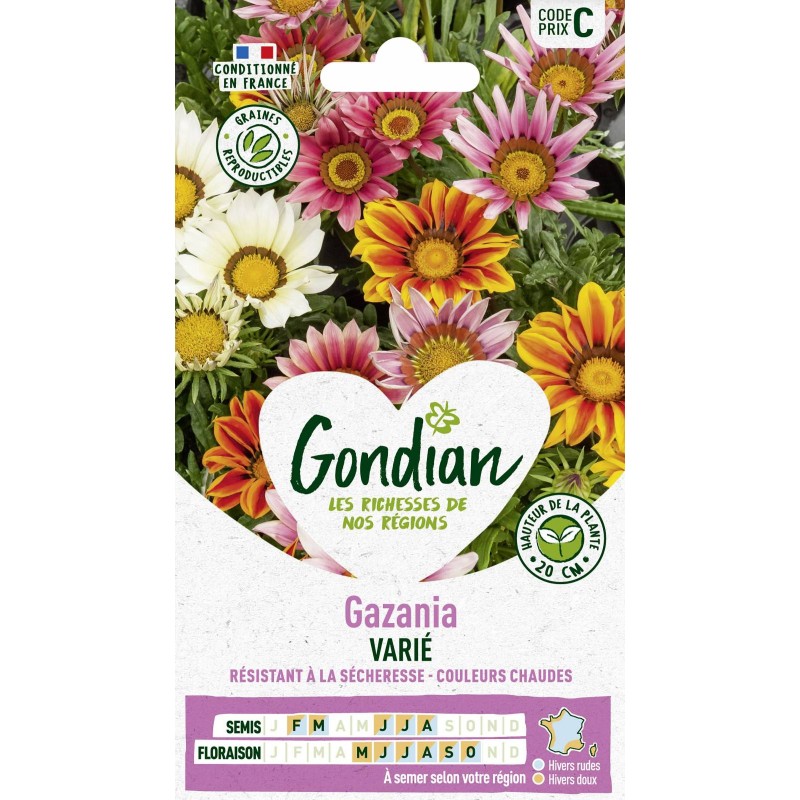 Plante se cultivant en 'vivace' dans le midi et en 'annuelle' dans les autres régions. Végétation vigoureuse. à port étalé. Tiges fortes et rigides. portant de grosses fleurs en forme de marguerite aux coloris vifs et variés. dans les tons jaune-orangé-pourpre. |
