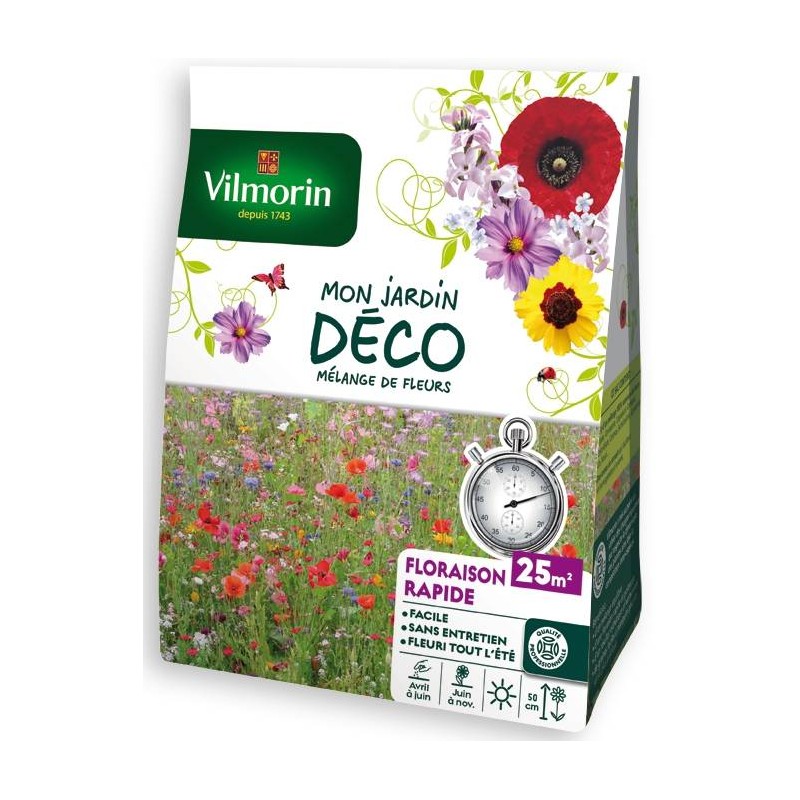 Ce mélange de fleurs a été spécialement étudié pour permettre une floraison très rapide. De plus malgré leurs floraisons très précoces, les fleurs choisies montrent une belle persistance qui permettant une floraison jusqu'aux 1ères gelées de début novembre.|