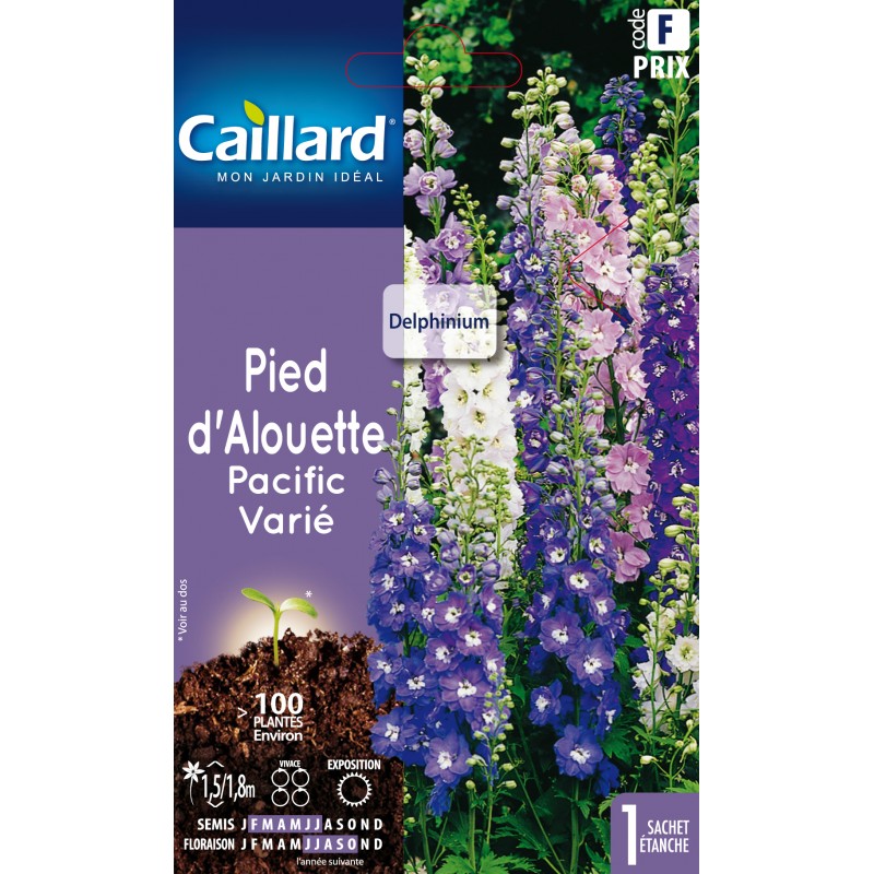 Plante vivace de 1,50 à 1,80 m de hauteur, appelée aussi Delphinium. Cette variété porte de longs épis couverts de fleurs semi-doubles, offrant des hampes florales majestueuses. Coloris variés : lavande, pourpre, blanc, rose... |