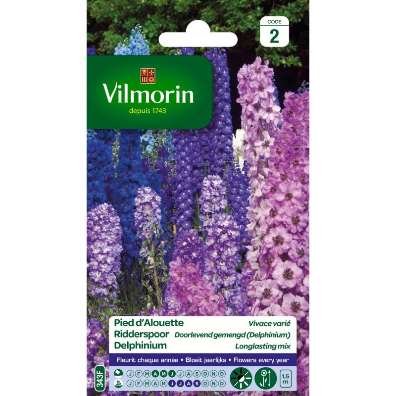 Vivaces pouvant rester en place durant plusieurs années. Ces grands pieds d'alouette embelliront votre jardin et plus particulièrement vos massifs hauts. Cueillez les tiges de fleurs alors que les fleurs de l'extrémité ne sont pas encore épanouies et formez de magnifiques bouquets d'intérieur. Cette variété égayera votre jardin par ses multiples fleurs aux coloris vifs, lumineux et variés.