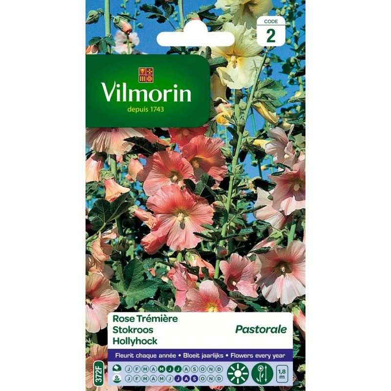 Vivaces pouvant rester en place durant plusieurs années. Les roses trémières sont de très belles fleurs au sein de massifs hauts ou comme habillage d'un mur. Arrosez-les régulièrement. Belle variété dont les fleurs grandes et bien ouvertes ont des coloris pastels allant du jaune à l'abricot.