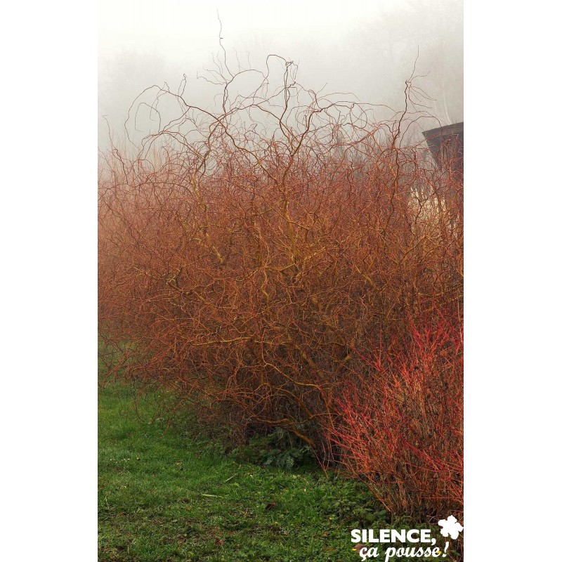 Rameaux rouges tortueux, feuillage argenté ondulé