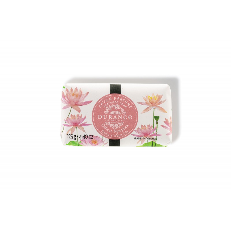 Un savon solide tout doux parfumé de notes florales fruitées lumineuses dans son joli emballage papier décoré, parfait à offrir en cadeau!|