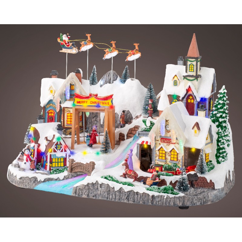 Scène Traineau Du Père Noël Led Multicolore Flash-Intérieur En Plastique H34-92L - Vendu À La Pièce-LUMINEO