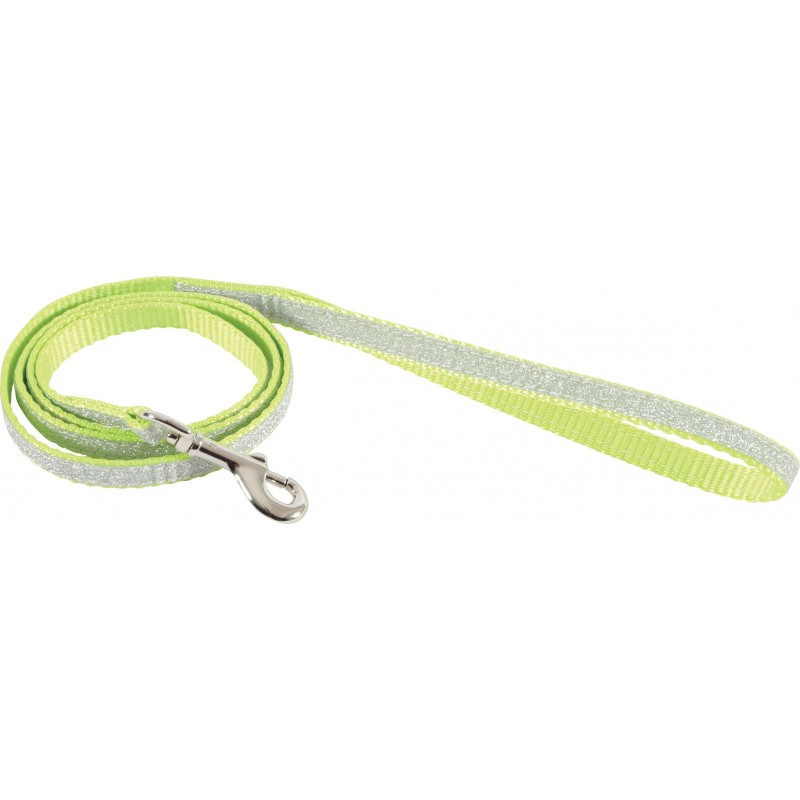 Laisse pailletée en nylon équipée d?un mousqueton en métal. Longueur 1m. Coloris : vert.