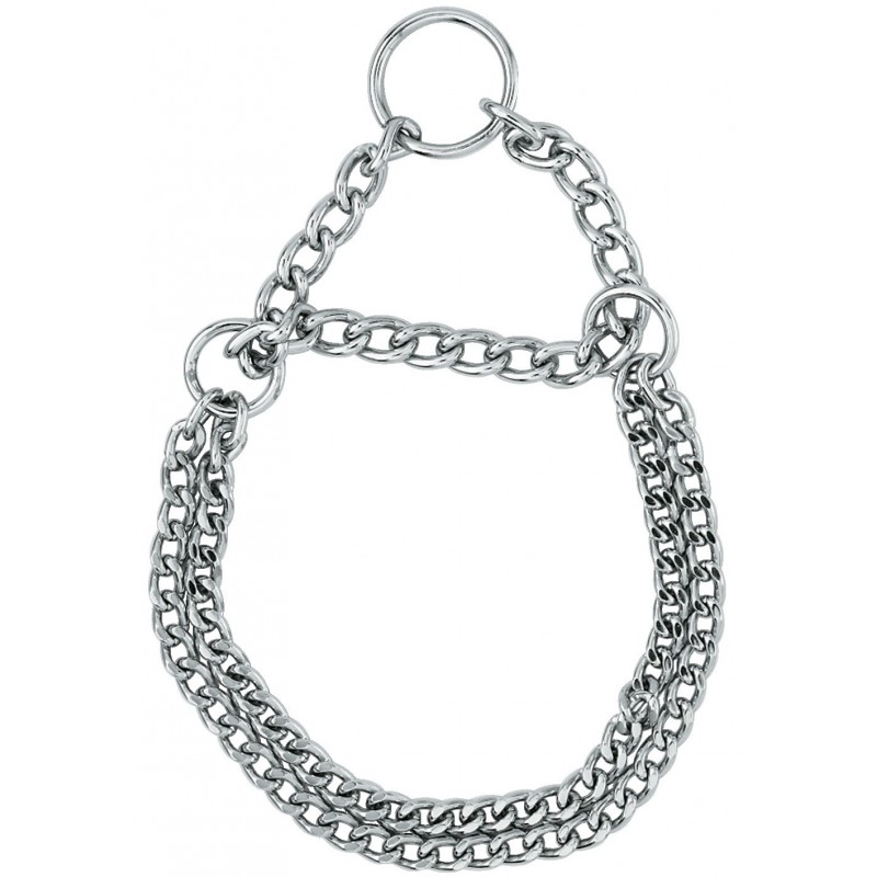 Ce collier semi-étrangleur de qualité peut être utilisé dans le cadre du dressage du chien quand il a tendance à tirer excessivement sur la laisse. Le collier lui causera dans ce cas une gêne sans pour autant l'étrangler.Il s'adapte aux tours de cou allant mesurant entre 50 cm et 60 cm. Il est en revanche déconseillé pour les chiens souffrant de problèmes respiratoires.