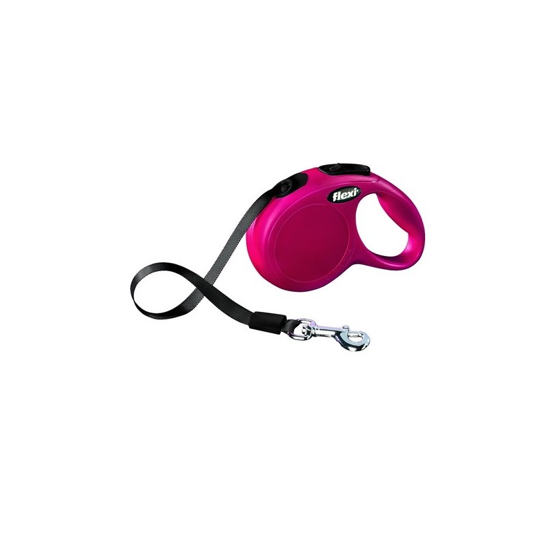 Laisse à enrouleur Flexi avec nouveau système de freinage et nouvelle forme ergonomique. Existe en rouge. en noir et en bleu. Equipée d'une sangle robuste. Pour chiens jusqu'à 12 Kg.laisse sangle a enrouleur avec systeme court de freinage extensible a partir de la taille S avec les accessoires flexi Multi Box et LED Lighting System|