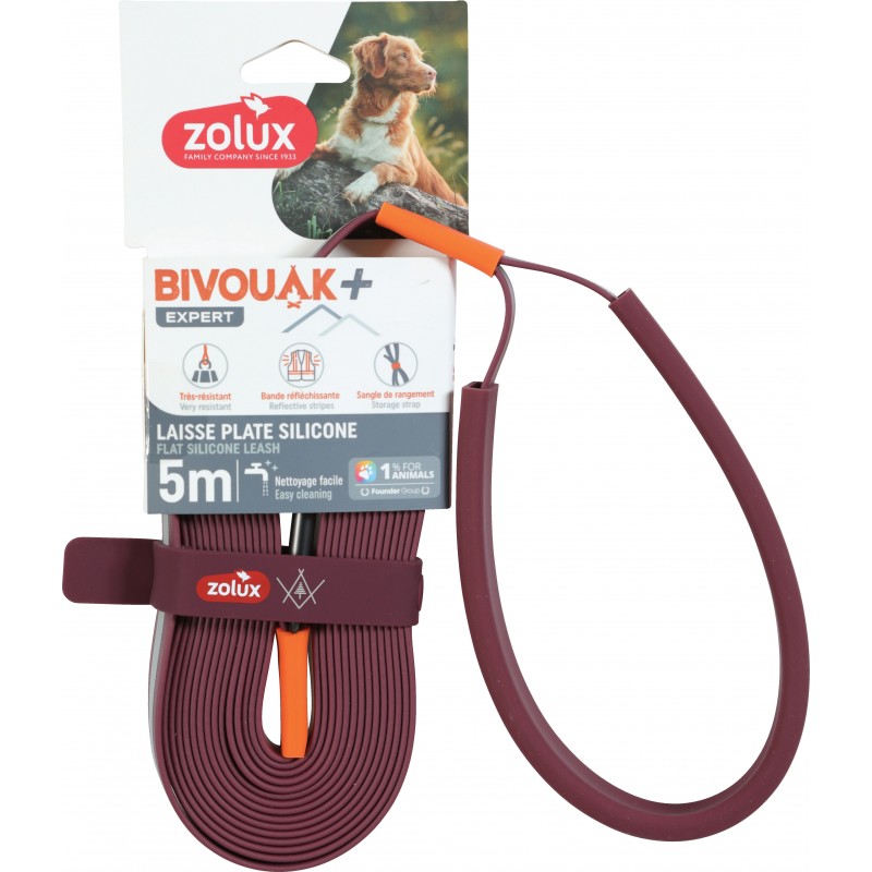 BIVOUAK+ EXPERT Laisse plate Silicone Rouge 5M