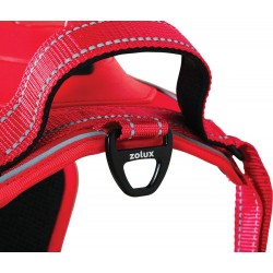 - Anneaux d'accroche: 1 situé sur le dessus du harnais pour attacher une laisse supplémentaire, 1 sous le harnais pour fixer un flasher