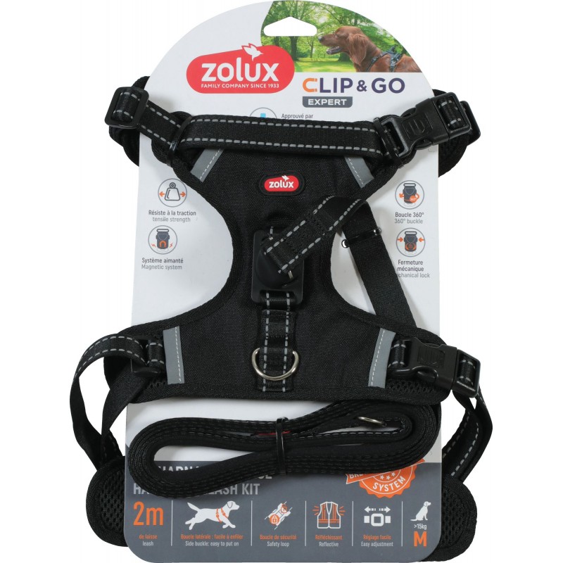 Kit Harnais + laisse 2 m, Grâce à son système de fermeture magnétique ultra résistant, le Kit Clip & Go vous permet d’attacher le chien d’une main et en un instant.