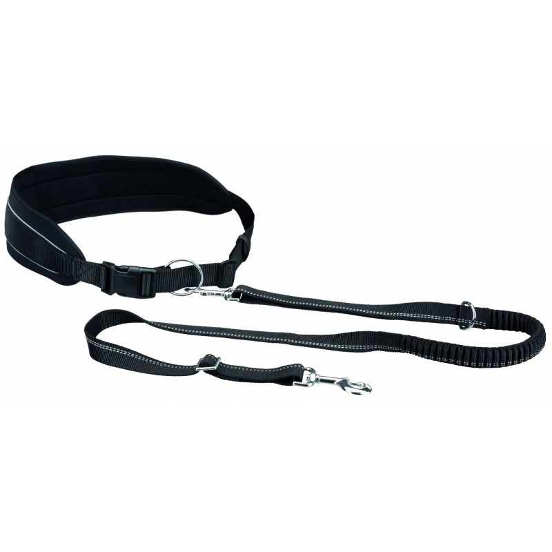 Ceinture ventrale avec laisse 75-120/9cm-1.2-1.5m/25m noir