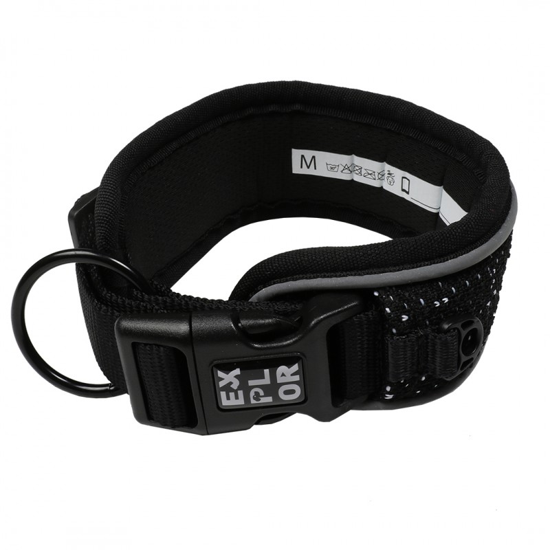 Sortez avec le collier Control EXPLOR Ultimate Fit, un col doux, confortable et large fait de tissus respirants et souples. La surface étendue et le tunnel dans lequel la sangle réglable est incorporée assurent une répartition optimale de la pression autour du cou du chien lors de la traction ou de l’intervention. Parce que la boucle est passée à travers l’anneau en D en acier inoxydable avant de la fermer, il y a moins de pression sur la boucle lorsque vous tirez sur l’anneau D. Le collier Control EXPLOR Ultimate Fit est ainsi encore plus sûr à utiliser. Les matériaux ont été soigneusement choisis. Le collier sèche rapidement, résiste à l'usure, et est clairement visible dans la circulation grâce aux bandes de couture réfléchissantes qui entoure le collier. À l’intérieur du collier, un numéro de téléphone peut être noté et vous trouverez des instructions de lavage claires pour une durée de vie optimale du collier. Sortez et EXPLOREZ !