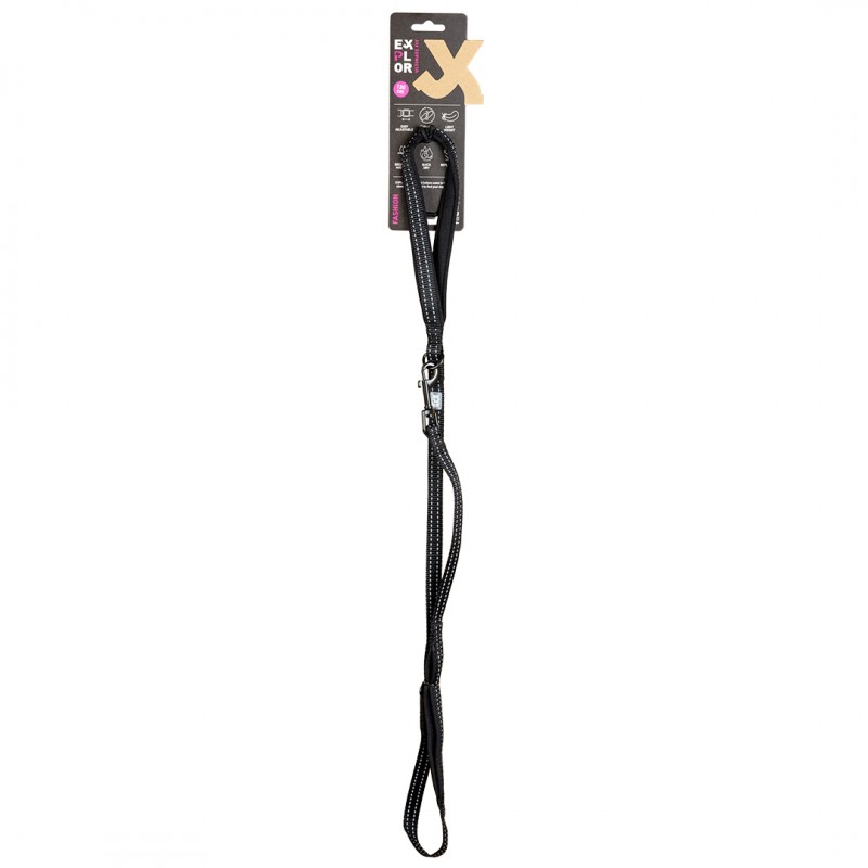 Sortez avec la laisse confortable EXPLOR Ultimate Fit On-The-Road, une laisse durable et confortable avec une languette de ceinture de sécurité. Elle présente une longueur totale de 1,30 mètre et est donc extrêmement adaptée aux chiots et à l'entraînement, mais aussi aux promenades dans un environnement dense. Lorsque le chien est transporté dans la voiture, une situation de sécurité est souhaitable. Avec la languette de ceinture de sécurité universelle attachée à la laisse EXPLOR Ultimate Fit On-The-Road, à 75 cm du chien, vous pouvez voyager en toute sécurité. La laisse comprend une deuxième poignée souple recouverte de néoprène, pour garder le chien court et sous contrôle plus rapidement. Il existe, le long de la longueur totale de la laisse, deux bandes de couture réfléchissantes pour une visibilité optimale dans la circulation. Sortez et EXPLOREZ !