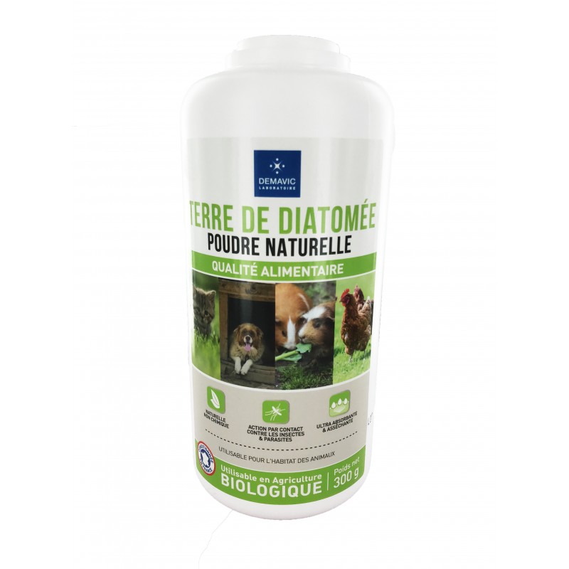 La terre de diatomée permet de combattre les insectes dans les habitats pour animaux et dans les autres endroits susceptibles d’en abriter (maison, cour…). C'est un produit 100% naturel, amorphe, non calciné et inoffensif pour les humains, les animaux et les plantes et ne contient ni produits chimiques ni de toxines.