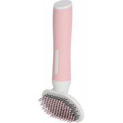 Le slicker doux pour chat Anah permet le brossage en douceur du sous-poil du pelage grâce à ses picots souples dont les embouts en plastique offrent plus de confort au chat. Le manche ergonomique antidérapant au toucher doux offre plus de confort et une prise en main optimale. Il est idéal pour démêler, supprimer les poils morts et lisser le pelage. Adapté aux poils mi-longs et longs. Disponible en 2 tailles: S et M. Taille S: L6,4xp3,5xh16,2cm. Taille M: L8,8xp4xh17cm.|