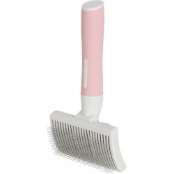 Le slicker rétractable pour chat Anah permet le brossage du sous-poil du pelage grâce à ses picots souples et recourbés. La brosse est facile à entretenir et à utiliser grâce à ses picots rétractables. Les picots sont en acier inoxydable. Le manche ergonomique antidérapant au toucher doux offre plus de confort et une prise en main optimale. Il est idéal pour démêler, supprimer les poils morts et lisser le pelage. Pour tous types de poils. Disponible en 2 tailles: S et M. Taille S: L7,5xp5xh17,5cm. Taille M: L9,2xp5xh17,5cm.|