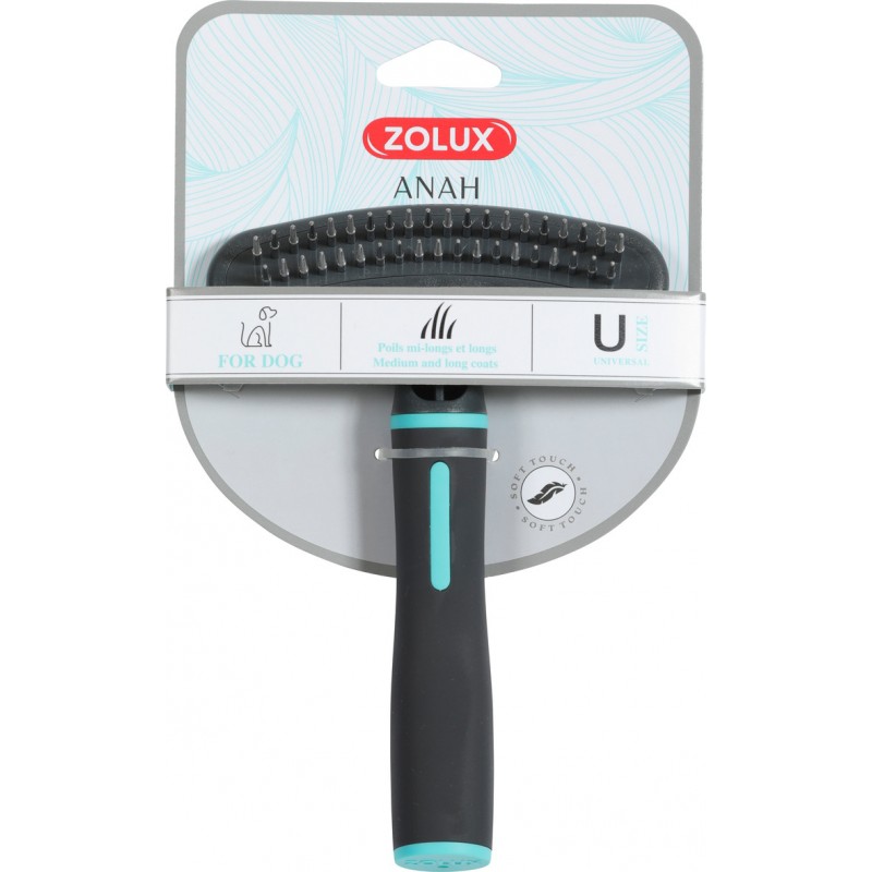 L'étrille double rang (20 dents et 19 dents) Anah retire efficacement les poils morts et démêle en douceur grâce aux dents rotatives. Les pointes arrondies des dents respectent la peau du chien. Le double rang est particulièrement adapté aux fourrures longues et denses. Le manche ergonomique antidérapant au toucher doux offre plus de confort et une prise en main optimale. Elle est idéale pour supprimer les poils morts et démêler le pelage. Adaptée aux poils mi-longs et longs.|