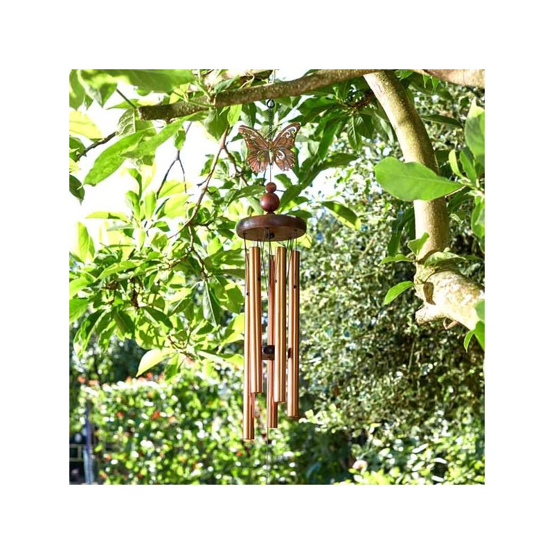 Papillon de Bronze • creez une atmosphere musicale magi que dans votrejardin. • Elabore avec precision pour creer un son musicalement accorde pour votrejardin et espace exterieur • Construction en acier et en aluminium • Finition UV et rBsistante aux intemperies • Aucun montage requis 80 x 12 cm - inox, aluminium