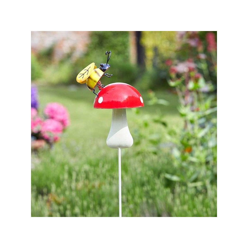 Pique décorative à planter dans un parterre ou un pot de fleurs. Mix de 3 designs: coccinelle, fourmi ou abeille sur champignon. Métal - 79 x 24 x 8.1 cm